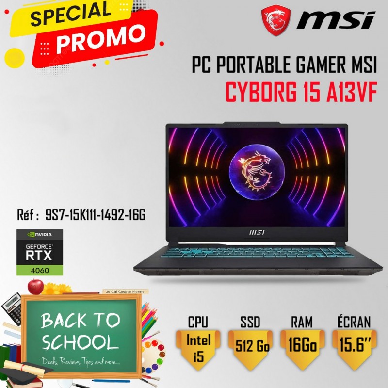 PC Portable Gamer MSI Cyborg 15 A13VF i5 13è Gén 16Go RTX 4060