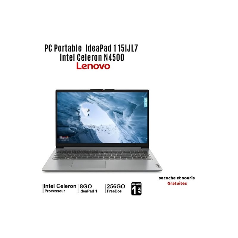 Pc Portable Lenovo IdeaPad 1 15IJL7 / Celeron N4500 / 8 Go / 256 Go SSD / Gris