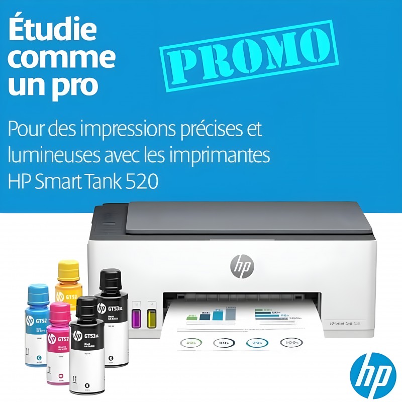 L’imprimante multifonction HP Couleur TANK 520 est conçue pour offrir des performances fiables, une qualité d’impression exceptionnelle et des coûts réduits. Grâce à sa technologie de réservoirs rechargeables, elle vous permet d’imprimer en grande quantité sans compromettre la qualité, tout en réduisant considérablement vos dépenses en encre.Polyvalente, cette imprimante 3-en-1 (impression, numérisation, copie) s’adapte parfaitement aux besoins des particuliers comme des professionnels. Elle propose une impression rapide, une connectivité fluide (USB ou Wi-Fi selon les modèles), et une utilisation intuitive avec son panneau de commande simple.